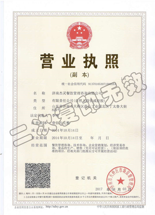 Copyright ? 2014-2019 濟(jì)南杰靈餐飲管理咨詢有限公司 版權(quán)所有 魯ICP備18023287號 溫馨提示:創(chuàng)業(yè)有風(fēng)險,投資需謹(jǐn)慎